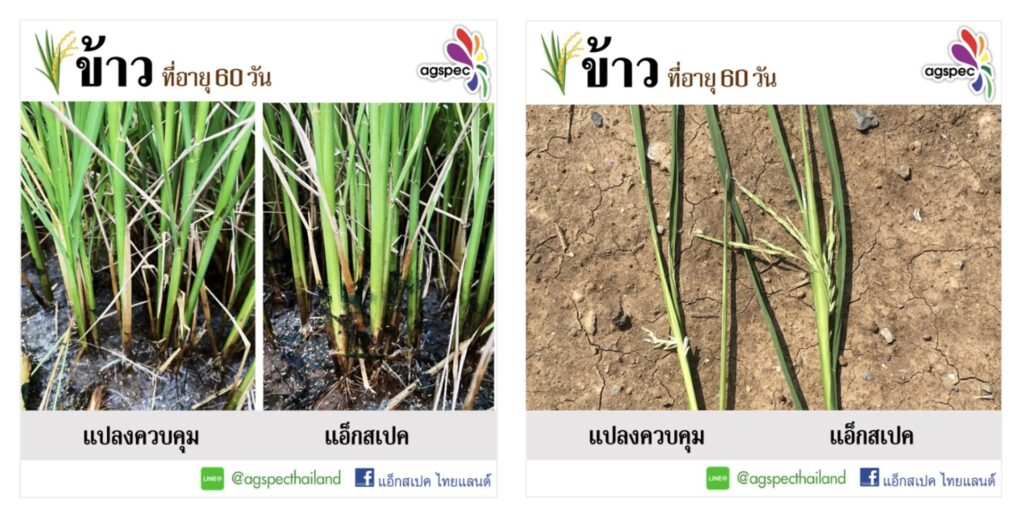 อายุข้าวที่ 60 วัน : พบว่าข้าวมีการแตกกอดี กอขยายใหญ่ มีแนวโน้มเพิ่มจำนวนใบต่อกอสูงขึ้น ต้นข้าวสมบูรณ์และสามารถสร้างดอกได้เร็วกว่า